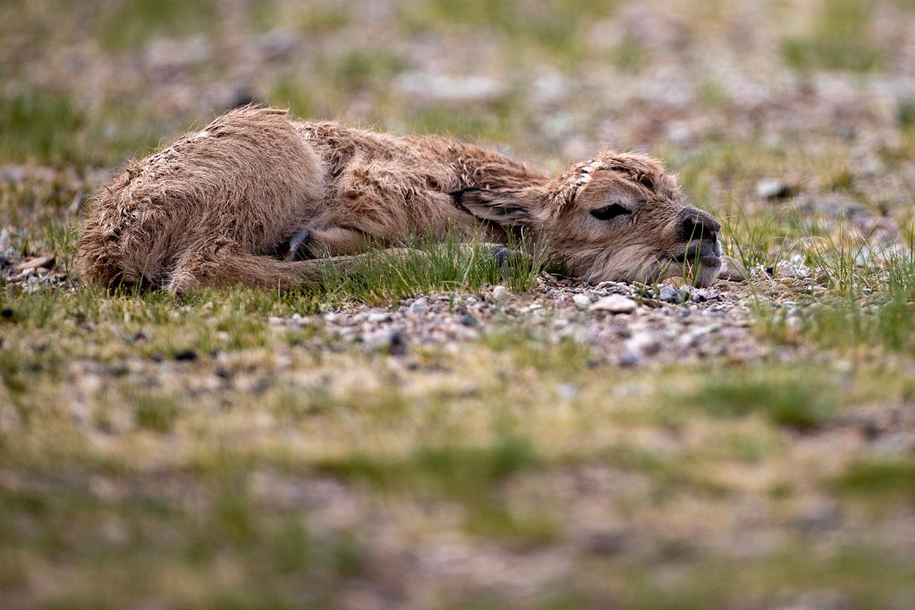 2024年6月17日,羌塘國家級自然保護區(qū)境內(nèi)的西藏那曲市申扎縣買巴鄉(xiāng)魯確塘草原上一只剛出生不久的小藏羚羊。