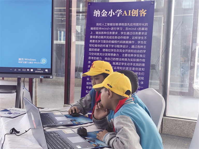 除了植物自動(dòng)檢測(cè)器外,現(xiàn)場(chǎng)還有實(shí)驗(yàn)小學(xué)學(xué)生、納金小學(xué)學(xué)生用電腦編程的“音樂(lè)會(huì)”“氣控游戲”等,各類(lèi)童真的奇思妙想在數(shù)字教育中得到實(shí)現(xiàn)。