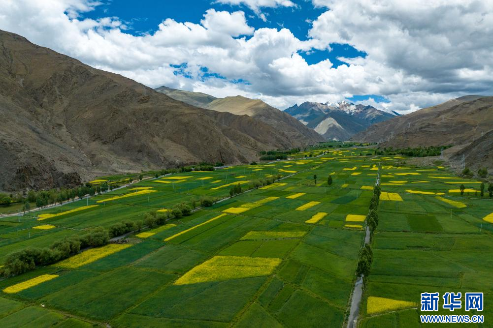 盛夏時(shí)節(jié),在西藏山南市乃東區(qū)雅礱河谷,金燦燦的油菜花與綠蔥蔥的青稞地交相輝映,河谷變成大自然的調(diào)色盤,宛如一幅絢麗的畫卷。