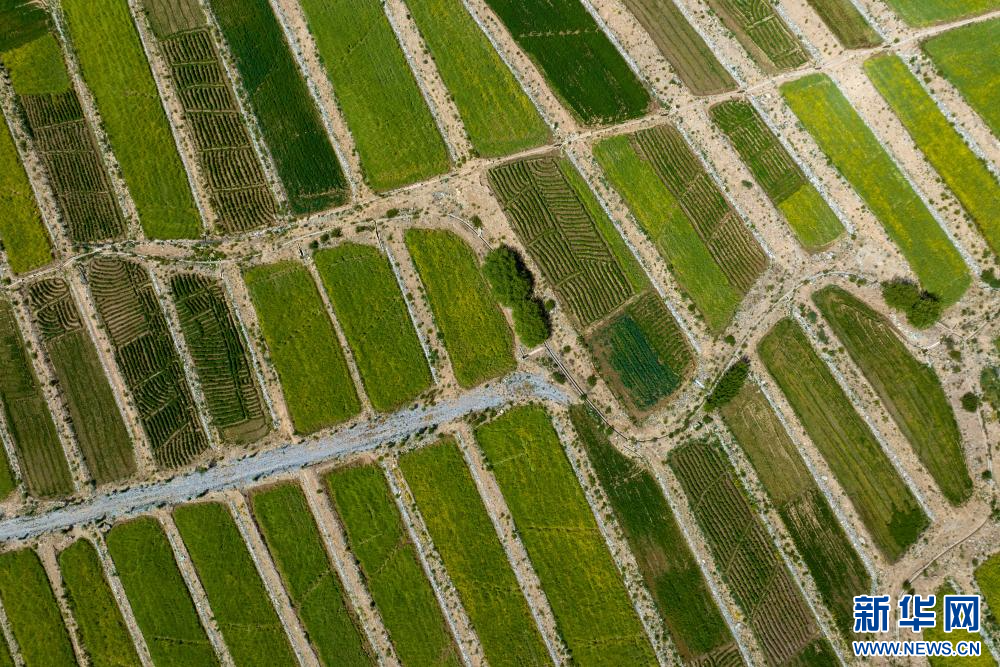 6月23日在西藏山南市乃東區(qū)境內(nèi)拍攝的田園風(fēng)光(無(wú)人機(jī)照片)。新華網(wǎng) 旦增努布 攝