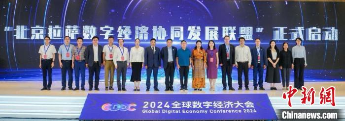 圖為“北京拉薩數(shù)字經(jīng)濟(jì)協(xié)同發(fā)展聯(lián)盟”正式啟動(dòng)。大會(huì)組委會(huì)供圖