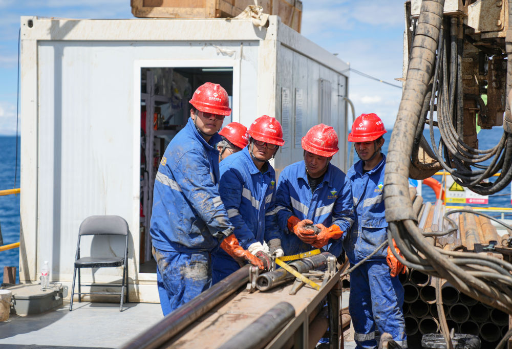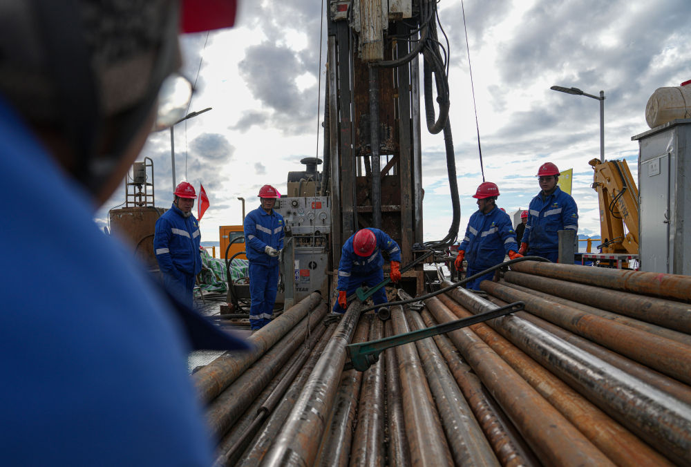 7月11日,鉆工劉文平在準(zhǔn)備拆卸鉆桿。新華社記者 晉美多吉 攝