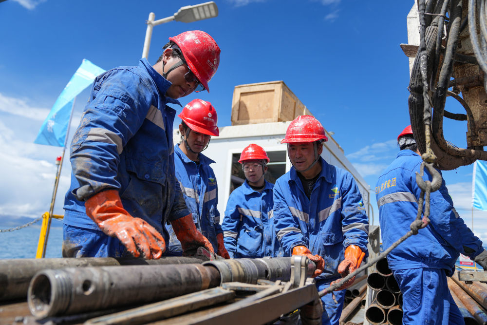 在海拔超過(guò)4700米的西藏納木錯(cuò)中心湖區(qū),21名來(lái)自五湖四海的鉆探專(zhuān)業(yè)技術(shù)人員,全天24小時(shí)輪班奮戰(zhàn)在面積僅200平方米的水上鉆探平臺(tái)上,協(xié)助第二次青藏科考科研人員提取湖泊巖芯樣品,這些樣本如同寶貝一樣,封存著青藏高原納木錯(cuò)地區(qū)百萬(wàn)年來(lái)的環(huán)境氣候變化信息。 擔(dān)任這次湖泊巖芯鉆探任務(wù)的是四川資源集團(tuán)華鋒鉆探隊(duì)。他們從5月31日入駐科考營(yíng)地、6月6日鉆取第一批湖泊巖芯樣品以來(lái)一直奮戰(zhàn)至今。這群平均年齡31歲的鉆探隊(duì)員常年工作在高海拔地區(qū),有著豐富的鉆探經(jīng)驗(yàn),此次鉆探是他們第一次進(jìn)行高海拔湖泊鉆探。目前納木錯(cuò)鉆探深度突破400米,達(dá)到國(guó)內(nèi)高海拔深水大湖的鉆探新紀(jì)錄。這些鉆探隊(duì)員在見(jiàn)證奇跡,也在創(chuàng)造歷史。