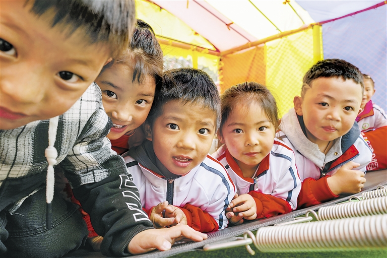 圖為昌都市邊壩縣第一小學(xué)的孩子們?cè)谡n間快樂地玩耍。記者 丹增群培 攝