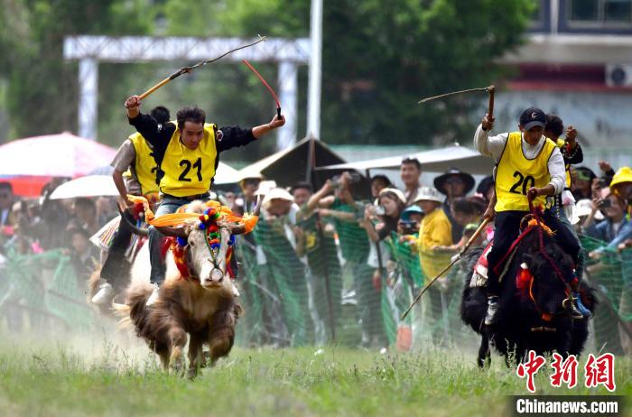 牦牛被譽(yù)為“高原之舟”,賽牦牛是藏族的傳統(tǒng)體育項(xiàng)目。比賽現(xiàn)場,騎手們精神抖擻,待于起跑線;發(fā)令后即馭牛疾奔,以先到終點(diǎn)者為勝。賽場上競爭激烈;賽場外民眾也為騎手們加油歡呼,比賽熱鬧非凡。