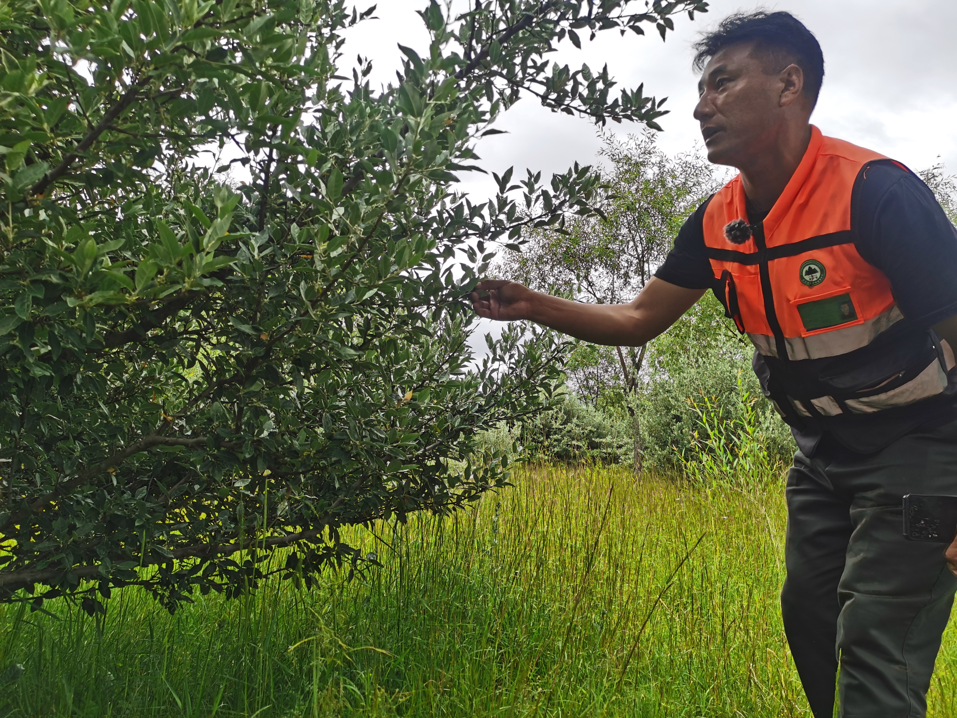 旺扎談到,他很喜歡管護員這份工作,一干就是18年。這里的一草一木他每天都要查看,有時能一眼看出哪些樹木遇到了什么樣的蟲害問題。一旦有蟲害發(fā)生,他會馬上向上級主管部門匯報,及時跟進治療。為了更好做好濕地管護工作,每年旺扎還會參加3~4次培訓,學習如何分辨林草病蟲害、如何防火等。如今,濕地生態(tài)越來越好,很多外地的游客慕名前來。每次看到他們專程來到這里欣賞美景,拍照打卡,他都會很開心。在旺扎眼里,這兒一年中最美好的季節(jié)莫過于夏季,此時到處是綠綠的草、清清的水,還有各色各樣的野花競相開放。