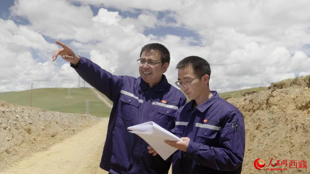 國(guó)家能源集團(tuán)西藏那曲分公司副總經(jīng)理胡建生(左一)和同事在一起工作。人民網(wǎng)記者 趙晨攝