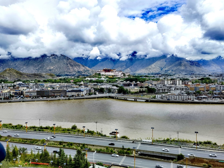 在南山公園觀景臺遠眺拉薩市區(qū)。記者 朱楠 攝
