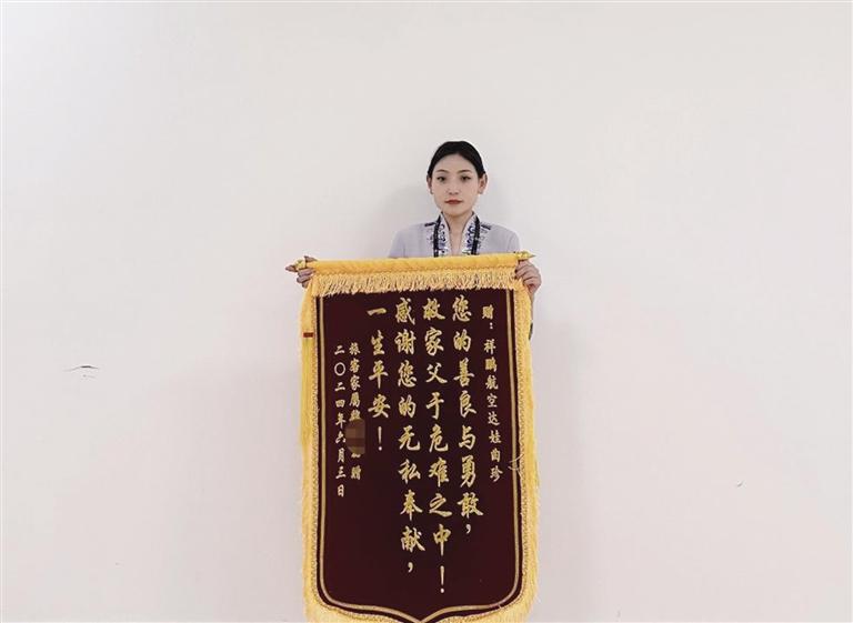 因機(jī)場醫(yī)療資源有限,達(dá)娃曲珍協(xié)助聯(lián)系救護(hù)車將旅客第一時(shí)間轉(zhuǎn)移至自治區(qū)第二人民醫(yī)院進(jìn)行救治,并主動幫助旅客處理好后續(xù)票務(wù)問題。事后,旅客家屬聯(lián)系祥鵬航空客服平臺,表達(dá)了對達(dá)娃曲珍的感謝,并于返藏后送上一面錦旗再次表達(dá)了謝意。