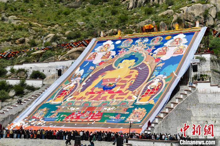 圖為哲蚌寺舉行盛大的展佛活動。貢確攝