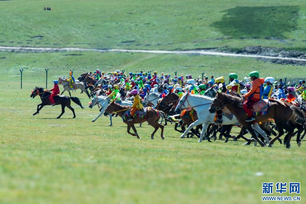 8月12日,騎手在傳統(tǒng)十公里大跑項(xiàng)目中角逐。 新華網(wǎng) 旦增努布 攝