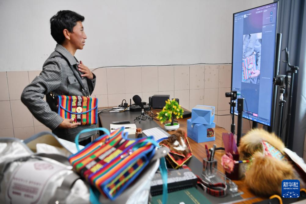 倉(cāng)秋多吉通過(guò)網(wǎng)絡(luò)銷(xiāo)售當(dāng)?shù)氐漠a(chǎn)品(8月24日攝)。新華社記者 張汝鋒 攝