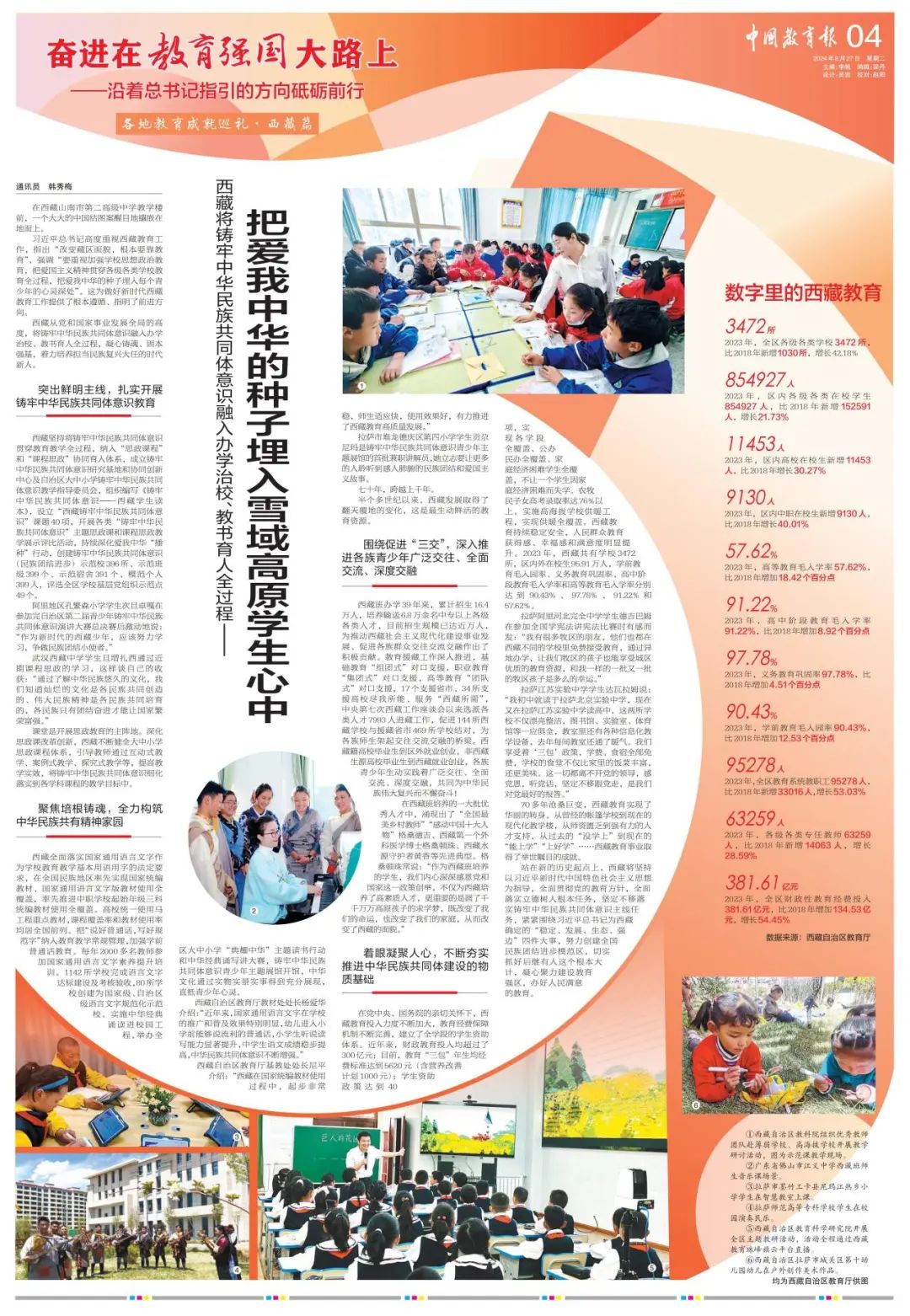 習(xí)近平總書記高度重視西藏教育工作,指出“改變藏區(qū)面貌,根本要靠教育”,強(qiáng)調(diào)“要重視加強(qiáng)學(xué)校思想政治教育,把愛(ài)國(guó)主義精神貫穿各級(jí)各類學(xué)校教育全過(guò)程,把愛(ài)我中華的種子埋入每個(gè)青少年的心靈深處”。這為做好新時(shí)代西藏教育工作提供了根本遵循、指明了前進(jìn)方向。