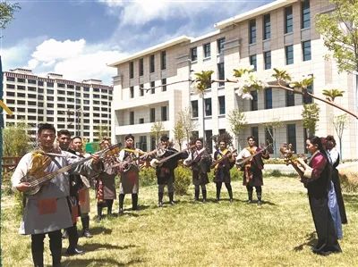 拉薩師范高等??茖W(xué)校學(xué)生在校園演奏民樂(lè)。