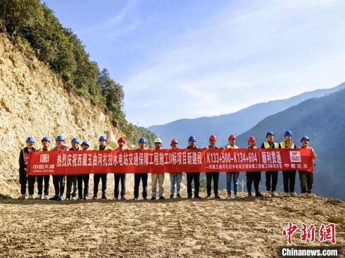 圖為扎拉水電站對(duì)外交通保障項(xiàng)目新建段道路順利貫通儀式現(xiàn)場(chǎng)。徐明朗 攝