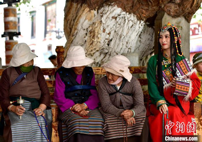 近年來,隨著文化旅游的興起,西藏正快速推進(jìn)文旅融合。八廓街、布達(dá)拉宮廣場等地,身著藏服拍攝寫真也成為眾多游客進(jìn)藏旅游標(biāo)配。圖為9月7日游客在八廓街拍攝藏服寫真。中新社記者 李林 攝