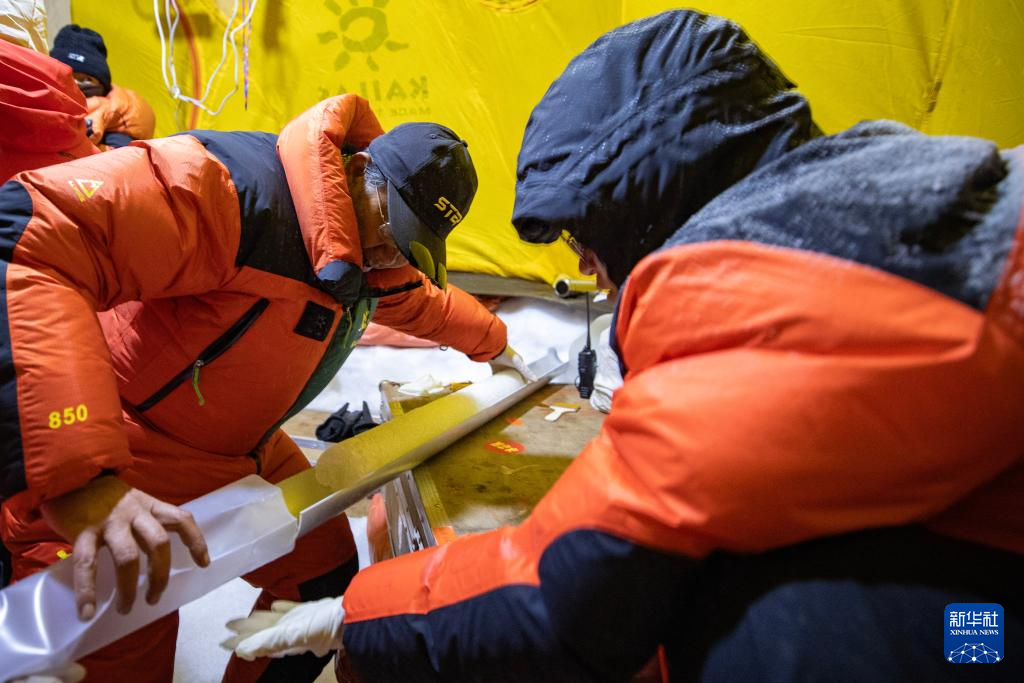 9月11日晚,由中國(guó)科學(xué)院青藏高原研究所副所長(zhǎng)徐柏青研究員帶領(lǐng)的科考團(tuán)隊(duì)在普若崗日冰原頂部海拔6100米的“Dome.C”點(diǎn)開(kāi)機(jī)鉆取冰芯。