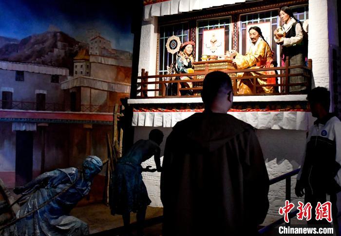 圖為9月14日,觀眾在西藏百萬農(nóng)奴解放紀念館日喀則分館內(nèi)看展覽。中新社記者 李林 攝