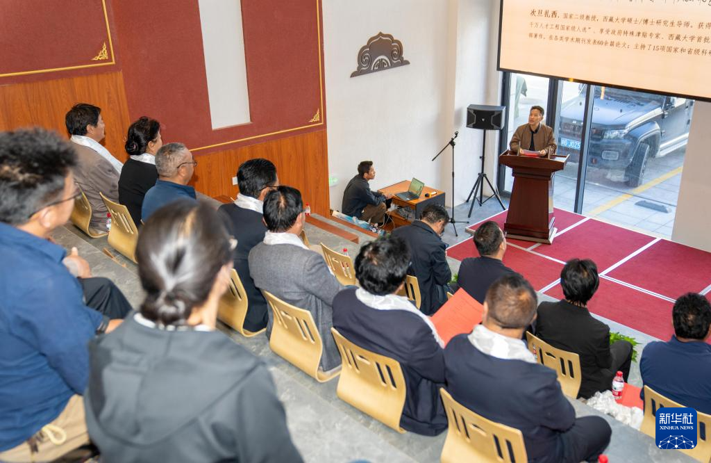 9月13日,西藏大學(xué)次旦扎西教授在現(xiàn)場進(jìn)行主旨發(fā)言。新華社記者 旦增尼瑪曲珠 攝