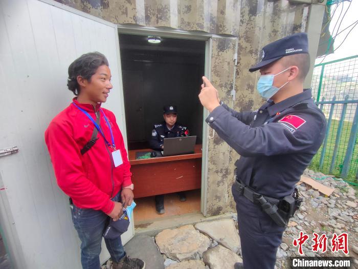 圖為吉隆出入境邊防檢查站民警在貢當傳統(tǒng)邊貿(mào)點對入境邊民進行人證對照?!〖拒?攝