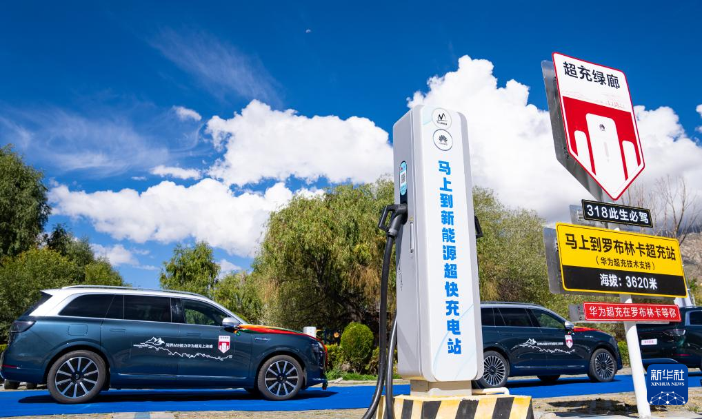 9月24日拍攝的318國道川藏超充綠廊羅布林卡超充站。新華社記者 丁增尼達 攝