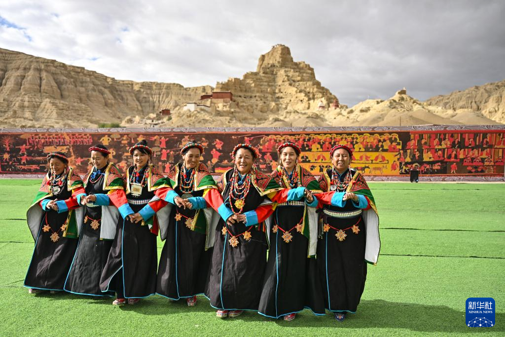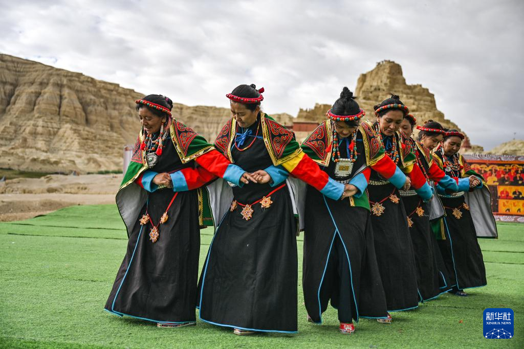 在西藏阿里地區(qū)札達縣古格王國遺址腳下,當?shù)卮迕癖硌荨靶琛保?月11日攝)。新華社記者 孫瑞博 攝