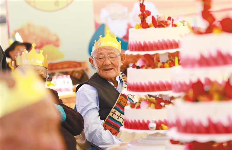 圖為拉薩市墨竹工卡縣民政局和退役軍人事務(wù)局舉行“我們的節(jié)日·重陽”主題活動(dòng),現(xiàn)場為老人們集體過生日。記者 唐斌 通訊員 洛克 攝