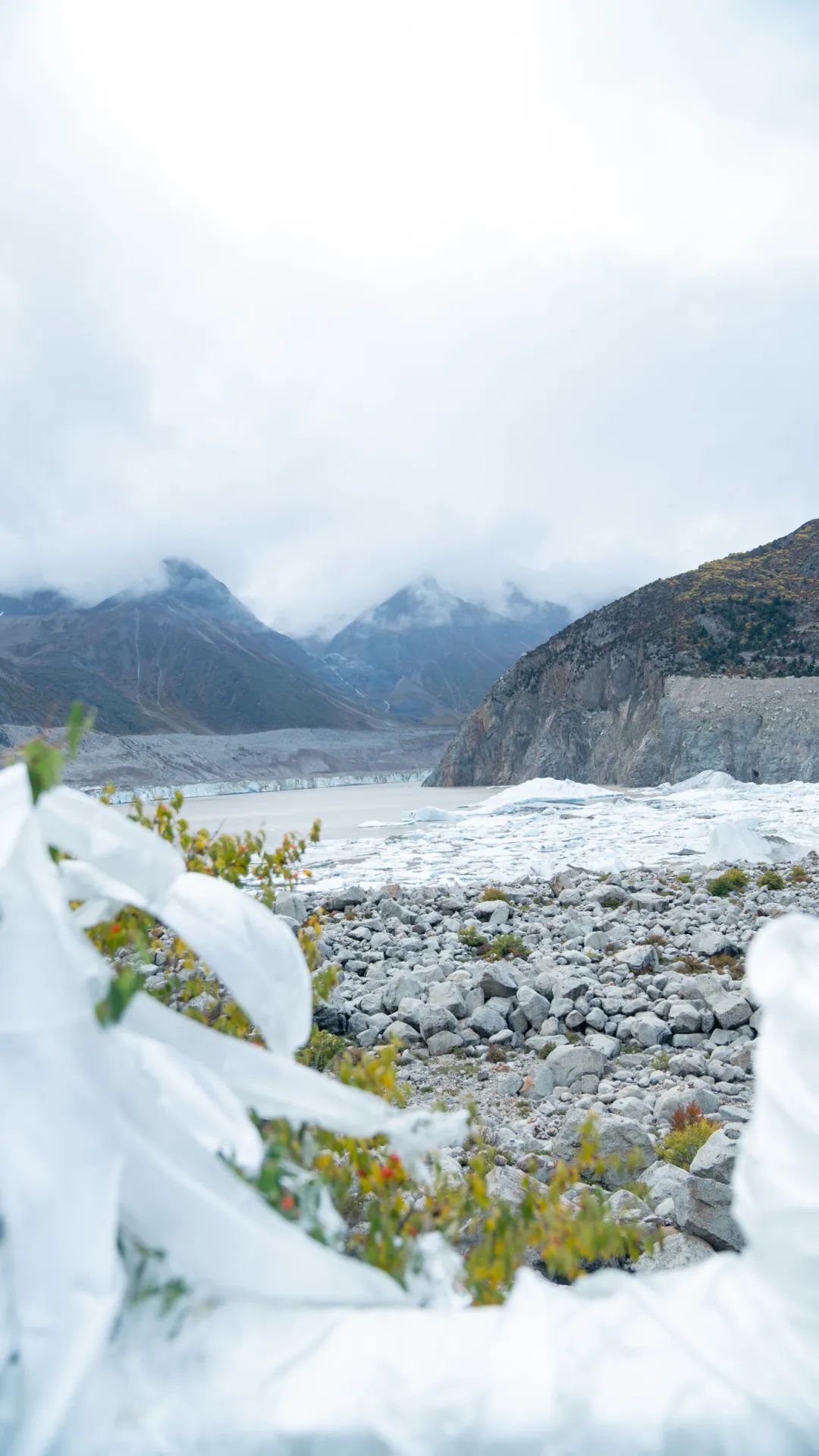 在八宿來(lái)古村,環(huán)顧四周可見(jiàn)至少6條冰川,統(tǒng)稱來(lái)古冰川群。冰川從海拔6600多米的山峰一路傾瀉至海拔4000米左右,站在它寬闊的冰體之上,猶如穿越到冰河世紀(jì)。當(dāng)我們站在陽(yáng)光照耀下絕美的天然藍(lán)冰洞里,仿佛穿越進(jìn)童話之中。當(dāng)日頭漸漸落下,在然烏湖畔,萬(wàn)丈金光從天而降照射在雪山之巔,一幅“日照金山”之景就此“繪制”完成。