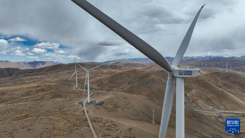10月17日拍攝的位于西藏日喀則市薩迦縣的風(fēng)力發(fā)電機(jī)組。新華社記者 晉美多吉 攝?