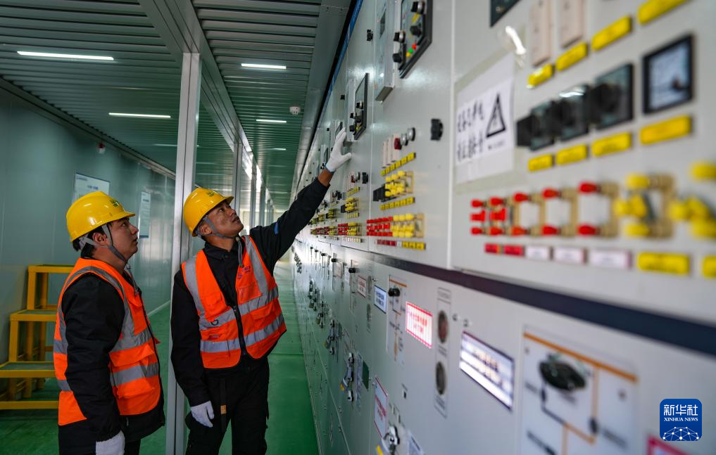 10月17日,工作人員在檢查35千伏開關(guān)柜。新華社記者 晉美多吉 攝?