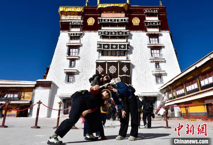 圖為11月1日,游客在布達(dá)拉宮德央夏廣場(chǎng)拍照。中新社記者 李林 攝