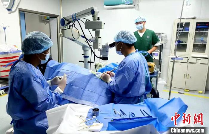 圖為援藏眼科專家張升慶和普蘭縣人民醫(yī)院醫(yī)護人員進行白內障手術。尼瑪次仁 供圖