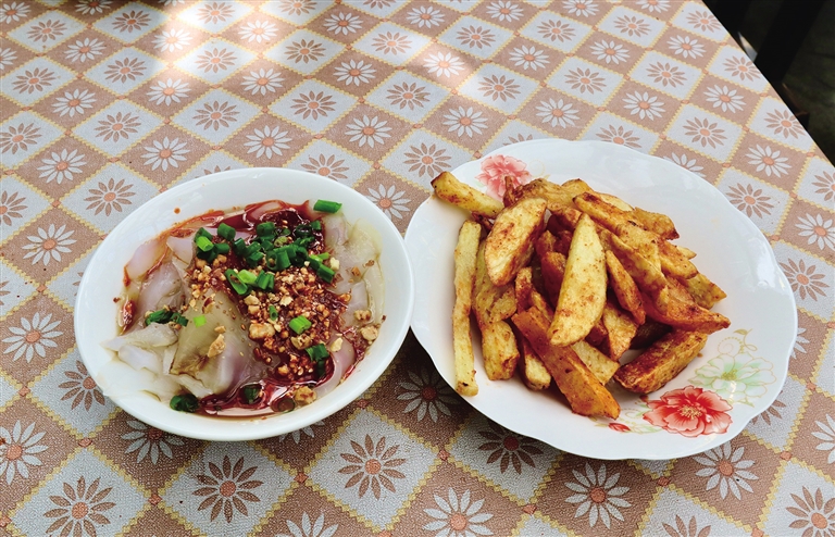 除了真實(shí)而美好的環(huán)境,涼粉店當(dāng)然以涼粉為主打??ú翛龇鄣甑臎龇蹆r(jià)格親民,Q彈爽滑的涼粉配上店家特制的辣椒,再撒上一層花生碎,看似簡單口感卻層次豐富,讓人回味無窮。除了涼粉,卡擦涼粉店還供應(yīng)炸土豆、涼面等具有代表性的拉薩小吃。嗦粉吃面的同時(shí),能真正感受到日光之城的溫暖和花朵的治愈,這樣的美好體驗(yàn)可能就在你身旁的小店中。