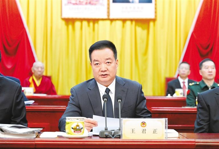 王君正強(qiáng)調(diào),要堅(jiān)持圍繞中心、服務(wù)大局,努力為建設(shè)社會主義現(xiàn)代化新西藏獻(xiàn)計(jì)出力。在鞏固和發(fā)展最廣泛的愛國統(tǒng)一戰(zhàn)線上履職盡責(zé),堅(jiān)持大團(tuán)結(jié)大聯(lián)合,深入踐行全過程人民民主,加強(qiáng)與各界人士的團(tuán)結(jié)聯(lián)誼,引導(dǎo)各族群眾堅(jiān)定不移聽黨話、感黨恩、跟黨走;發(fā)揮人民政協(xié)在對外交往中的作用,讓世界了解真實(shí)、現(xiàn)代化、幸福的西藏,讓西藏更快走向世界。在落實(shí)“穩(wěn)定、發(fā)展、生態(tài)、強(qiáng)邊”四件大事中建功立業(yè),堅(jiān)持把政協(xié)工作置于西藏經(jīng)濟(jì)社會發(fā)展大局中思考謀劃推動(dòng),圍繞創(chuàng)建全國民族團(tuán)結(jié)進(jìn)步模范區(qū)、創(chuàng)建高原經(jīng)濟(jì)高質(zhì)量發(fā)展先行區(qū)、創(chuàng)建國家生態(tài)文明高地、創(chuàng)建國家固邊興邊富民行動(dòng)示范區(qū)等自治區(qū)黨委中心工作,深入開展協(xié)商議政,積極建言獻(xiàn)策。在進(jìn)一步全面深化改革上凝聚共識,積極健全政協(xié)工作制度機(jī)制,著力健全政協(xié)深度協(xié)商互動(dòng)、意見充分表達(dá)、廣泛凝聚共識的機(jī)制,把各族各界、各行各業(yè)促改革、謀發(fā)展的智慧和力量凝聚起來,匯聚起深化改革的強(qiáng)大合力。在改善民生、凝聚人心上積極作為,圍繞解決制約西藏經(jīng)濟(jì)社會發(fā)展的人口、人心、人才問題,多建創(chuàng)新之言、多獻(xiàn)務(wù)實(shí)之策,多做知民情、解民憂、暖民心的工作,不斷提高各族群眾的獲得感、幸福感、安全感。