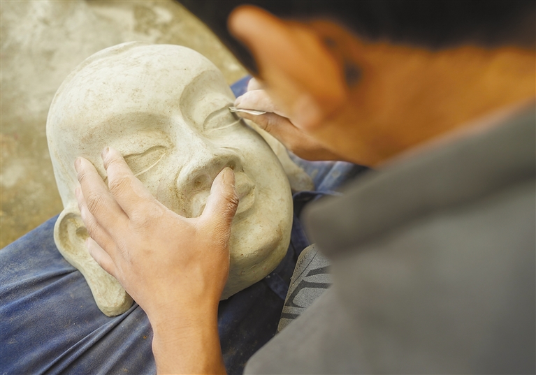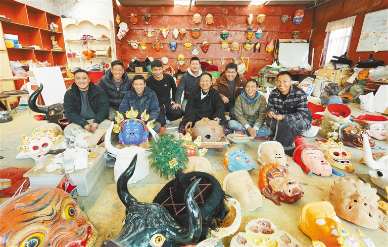 在拉薩市達孜區(qū)雪鄉(xiāng)民間傳統(tǒng)手工藝農民專業(yè)合作社的小院里,拉薩布制面具制作技藝西藏自治區(qū)級非遺傳承人西洛和徒弟們忙得熱火朝天,他們正在制作面具。面具制作工序繁雜,制作一個面具包括雕刻、分層、風干和噴漆等十幾道工序。2012年,在政府的扶持下,西洛創(chuàng)辦了傳統(tǒng)手工藝合作社,主要制作和銷售藏戲面具。西洛制作的面具造型精美,廣泛運用于藏戲表演中?!懊婢叩膬r格從幾百元到幾萬元不等,大部分訂單來自西藏的各大藏戲團?!蔽髀逭f。近年來,合作社不斷吸納當地群眾學習面具制作技藝,不僅為當地群眾提供就業(yè)機會,也進一步助力非物質文化遺產的保護和發(fā)展。