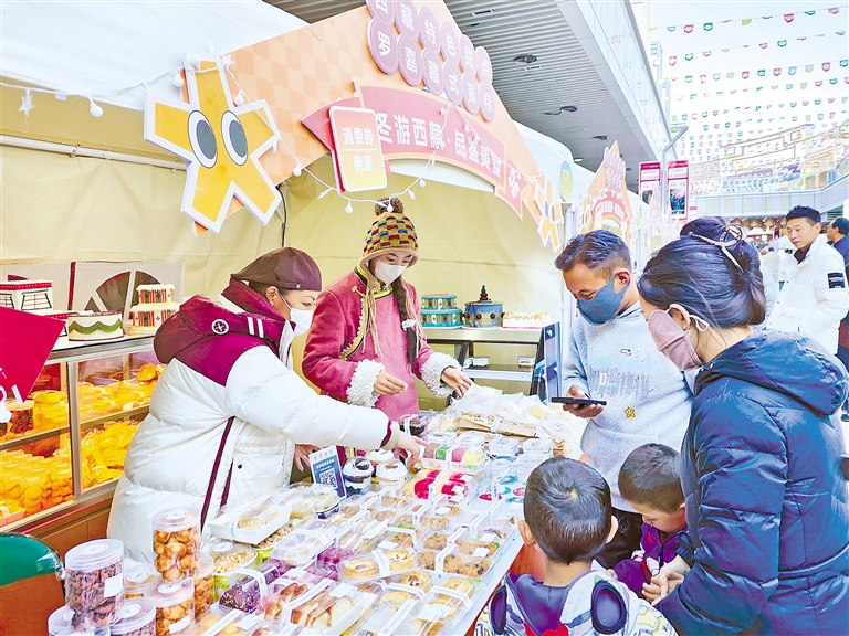 圖為在“西藏味道”體驗(yàn)周活動(dòng)中,商家向市民群眾介紹美食?!∮浾摺堄睢∫?jiàn)習(xí)記者 土旦仁青 攝