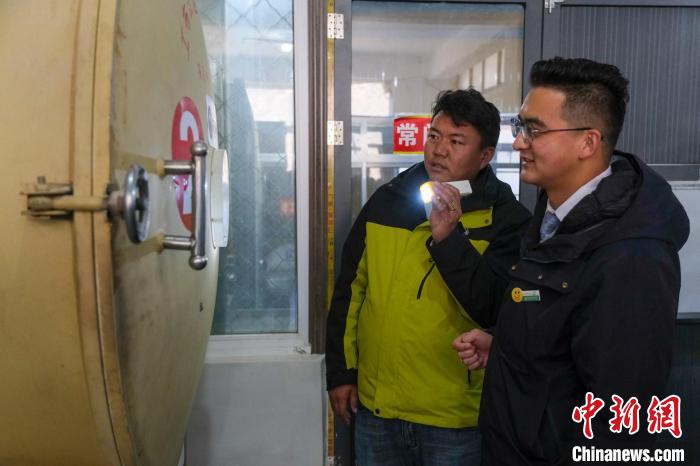 圖為12月12日,中國農(nóng)業(yè)銀行工布江達(dá)縣支行綜合部經(jīng)理王南(右)在合作社了解生產(chǎn)經(jīng)營情況。記者 江飛波 攝