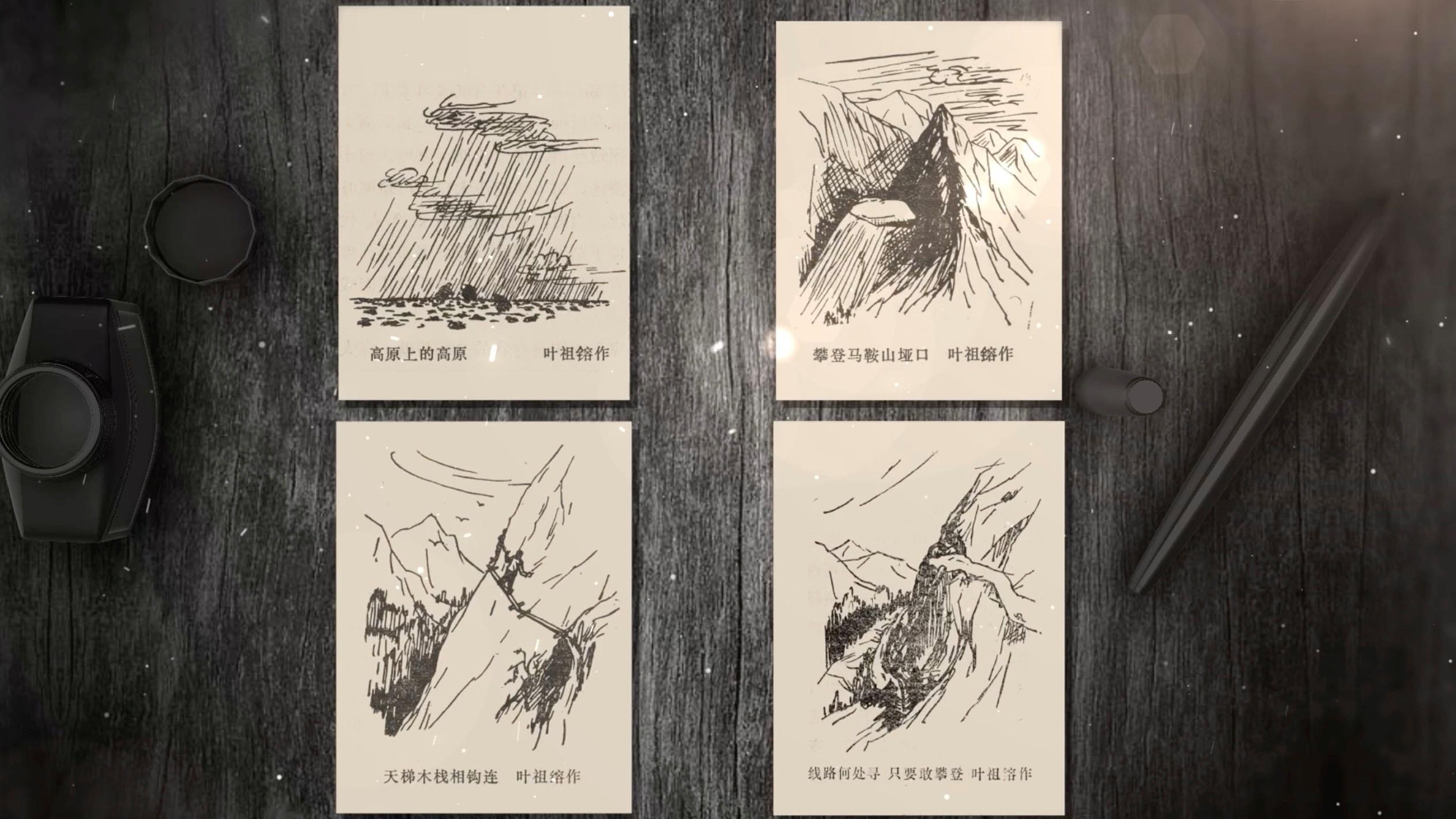 畫稿的作者是葉祖镕。他是踏勘隊(duì)中負(fù)責(zé)地形圖測(cè)繪的成員。在隊(duì)長(zhǎng)余炯帶領(lǐng)下,深入無(wú)人區(qū)進(jìn)行勘測(cè),與筑路大軍幾近失聯(lián)數(shù)月,但最終冒著生命危險(xiǎn)帶回了寶貴的勘測(cè)報(bào)告。這是葉祖镕當(dāng)年畫的素描畫,高原上的高原、雪山頂?shù)膱嚎凇⒔^壁間的天梯、險(xiǎn)峰中的窄路、踏勘隊(duì)沿途經(jīng)歷的各種地形,保留在這四張手繪中,它們見(jiàn)證著在生死之間,踏勘隊(duì)員的樂(lè)觀豁達(dá)、無(wú)所畏懼。