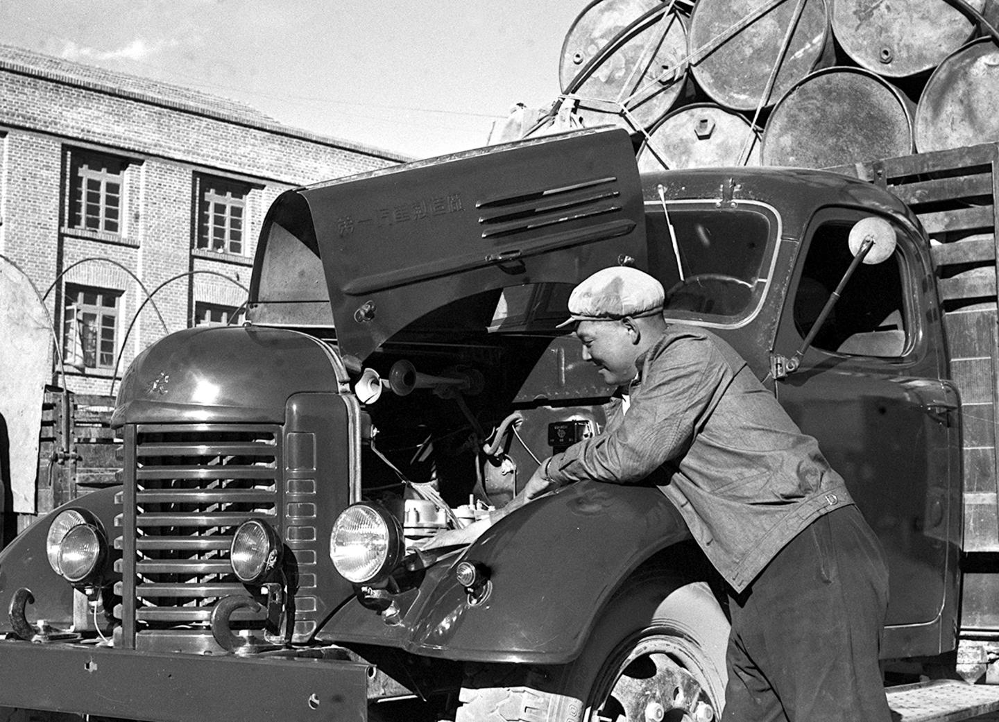 1964年,曾經(jīng)是川藏公路筑路工人的汽車(chē)駕駛員呷瑪卻桑在出車(chē)前對(duì)汽車(chē)機(jī)件進(jìn)行檢查?!?/p>