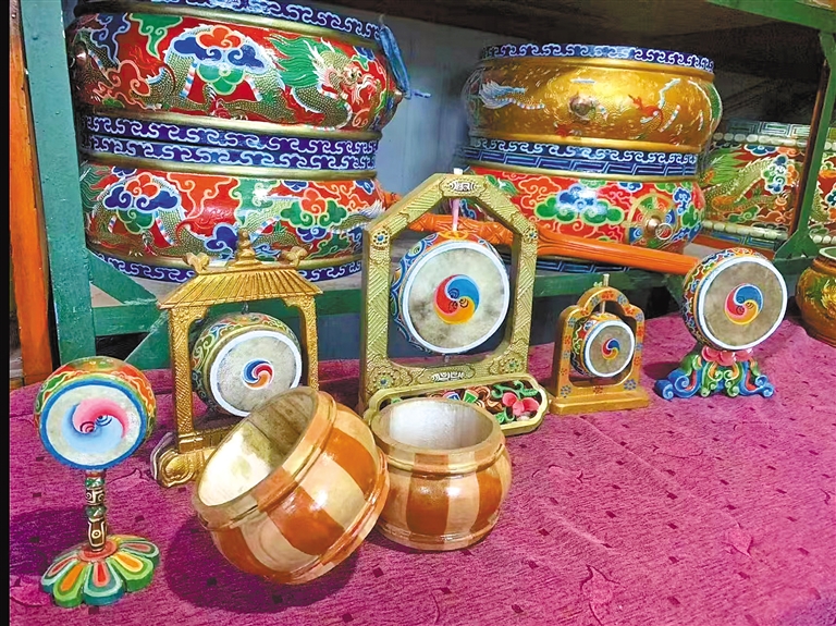 貢覺(jué)頓珠制作的小型裝飾鼓。