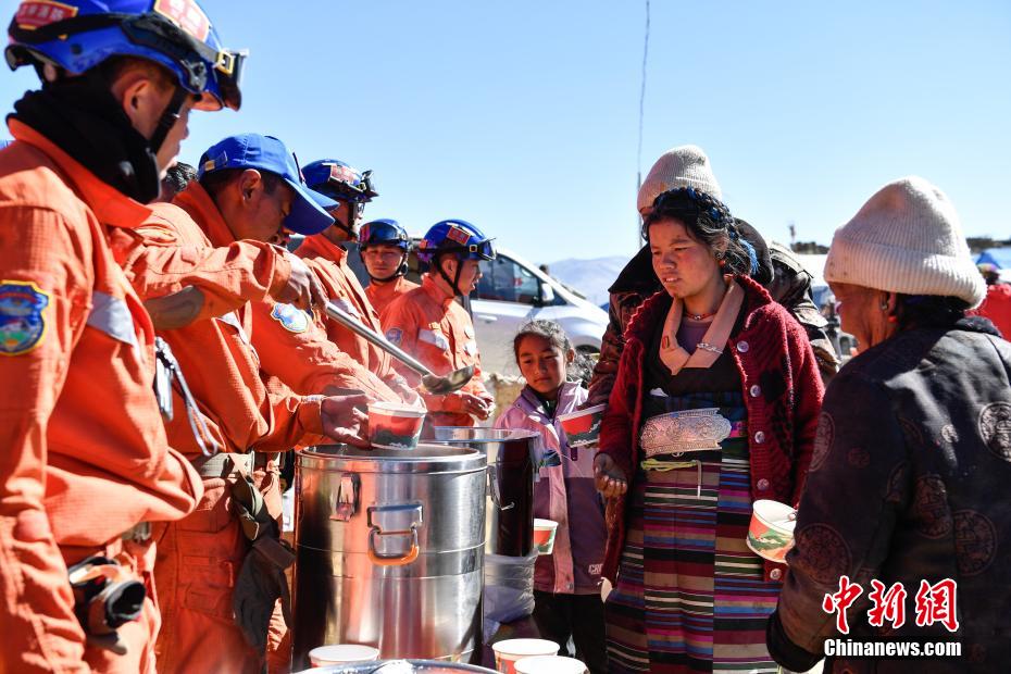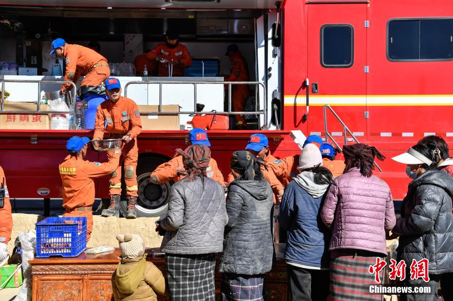 1月9日,西藏自治區(qū)定日縣曲洛鄉(xiāng)措昂村安置點,西藏自治區(qū)森林消防總隊救援人員為受災(zāi)民眾提供飲食。當(dāng)日,位于西藏自治區(qū)定日縣曲洛鄉(xiāng)措昂村安置點,西藏各級救援人員和愛心企業(yè)不斷轉(zhuǎn)運、發(fā)放生活物資、搭建活動板房、全力保障受災(zāi)民眾的飲食供應(yīng)等,保障受災(zāi)民眾基本生活。中新社記者 貢嘎來松 攝