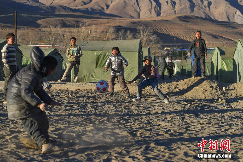 1月10日,在西藏日喀則市定日縣長所鄉(xiāng)森嘎村安置點,夕陽下,孩子們分組開展點球大戰(zhàn)。地震雖給村莊帶來傷痛,但安置點物資保障充足,孩子們在艱苦環(huán)境中仍保持樂觀,用簡單的游戲傳遞著對生活的熱愛和希望。貢確 攝