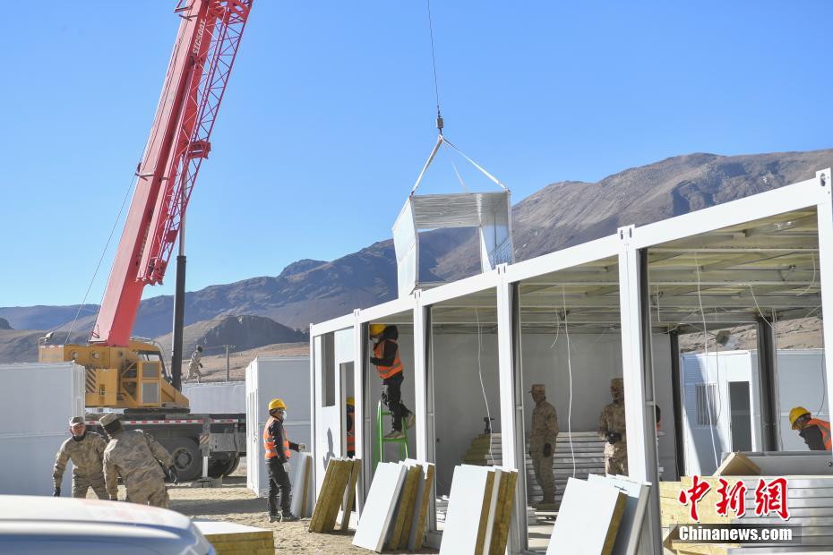 1月7日9時(shí)5分,西藏自治區(qū)日喀則市定日縣發(fā)生6.8級(jí)地震,震源深度10公里。災(zāi)情就是命令,當(dāng)?shù)卣推髽I(yè)迅速行動(dòng),目前災(zāi)區(qū)多個(gè)鄉(xiāng)村都在加緊進(jìn)行保溫板房建設(shè),只為讓受災(zāi)民眾早日擁有“安心巢”。據(jù)了解,每間板房有18平方米,可容納4到5人,板房設(shè)有折疊床、桌子、爐子等,并保障民眾用電需求,讓他們更好地度過冬天。圖為1月9日,西藏日喀則市定日縣曲洛鄉(xiāng)措昂村安置點(diǎn),中國交建西藏指揮部抗震救災(zāi)前線工人在搭建保溫板房。中新社記者 貢嘎來松 攝
