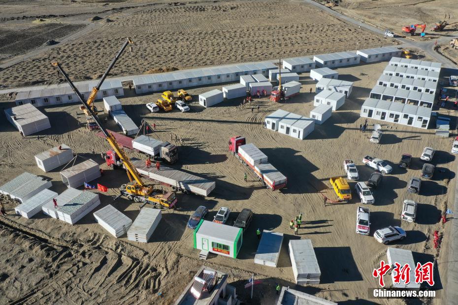 1月7日9時(shí)5分,西藏自治區(qū)日喀則市定日縣發(fā)生6.8級(jí)地震,震源深度10公里。災(zāi)情就是命令,當(dāng)?shù)卣推髽I(yè)迅速行動(dòng),目前災(zāi)區(qū)多個(gè)鄉(xiāng)村都在加緊進(jìn)行保溫板房建設(shè),只為讓受災(zāi)民眾早日擁有“安心巢”。據(jù)了解,每間板房有18平方米,可容納4到5人,板房設(shè)有折疊床、桌子、爐子等,并保障民眾用電需求,讓他們更好地度過冬天。圖為1月10日,西藏日喀則市定日縣長所鄉(xiāng)森嘎村保溫板房建設(shè)現(xiàn)場。(無人機(jī)照片)中新社記者 貢嘎來松 攝