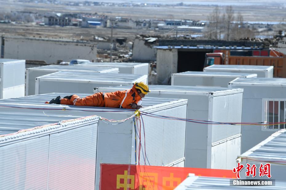 1月7日9時(shí)5分,西藏自治區(qū)日喀則市定日縣發(fā)生6.8級(jí)地震,震源深度10公里。災(zāi)情就是命令,當(dāng)?shù)卣推髽I(yè)迅速行動(dòng),目前災(zāi)區(qū)多個(gè)鄉(xiāng)村都在加緊進(jìn)行保溫板房建設(shè),只為讓受災(zāi)民眾早日擁有“安心巢”。據(jù)了解,每間板房有18平方米,可容納4到5人,板房設(shè)有折疊床、桌子、爐子等,并保障民眾用電需求,讓他們更好地度過冬天。圖為1月11日,西藏日喀則市定日縣曲洛鄉(xiāng)措昂村安置點(diǎn),中國交建西藏指揮部抗震救災(zāi)前線工人在為板房搭設(shè)電路。中新社記者 貢嘎來松 攝