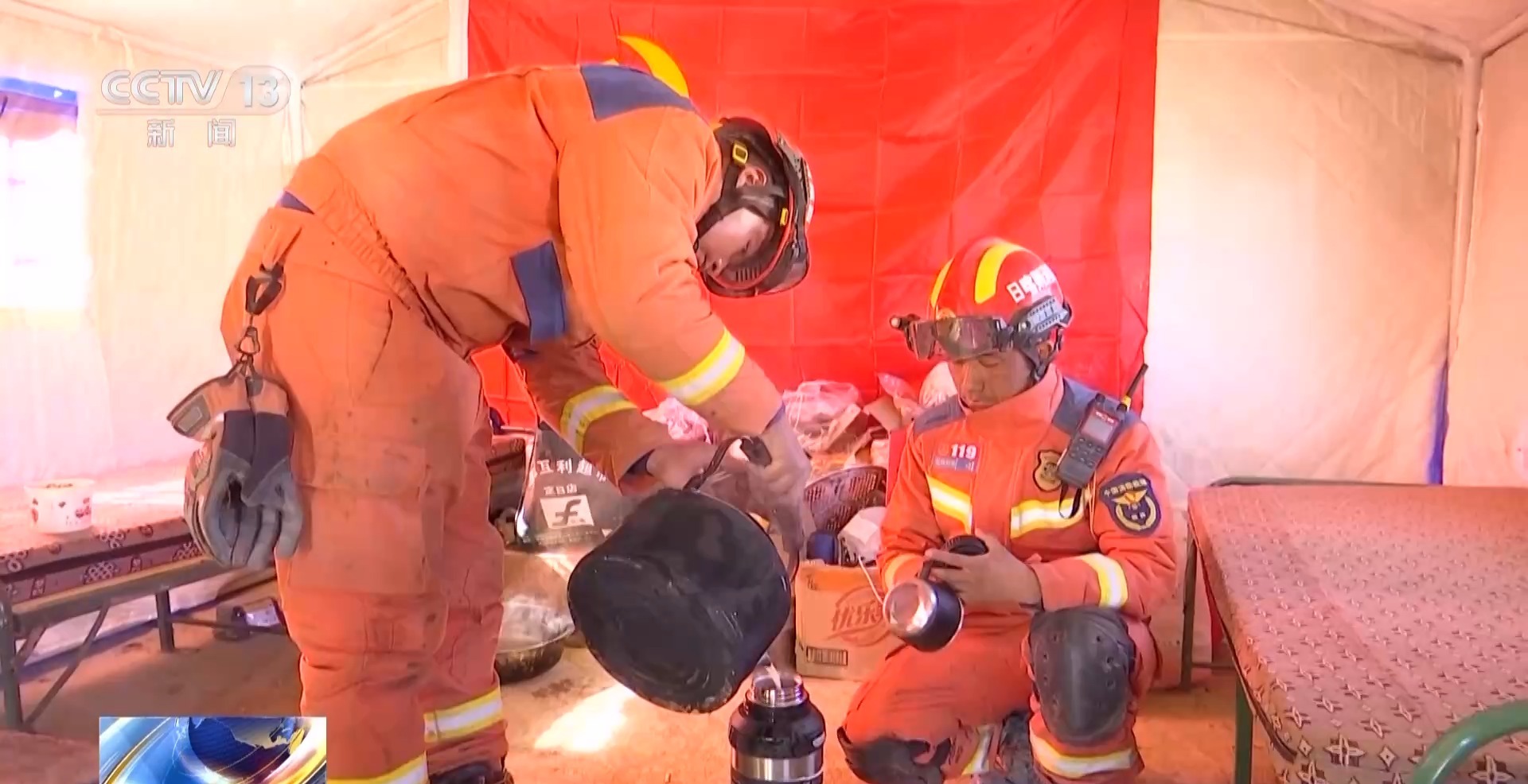 甜茶、藏面、熱牛奶,在這個臨時帳篷里,消防員們正在為木隊村的百姓們制作當(dāng)天的午飯。