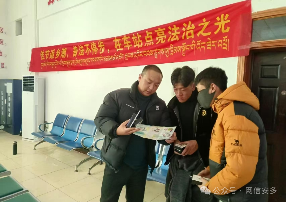 2025年1月23日,在蛇年春節(jié)返鄉(xiāng)潮的高峰,安多縣普法辦聯合縣禁毒辦在安多火車站開展以“佳節(jié)返鄉(xiāng)潮,普法不停步,在車站點亮法治之光”為主題的宣傳活動,為歸心似箭的旅客們送上了一份特殊的“法律年貨”。