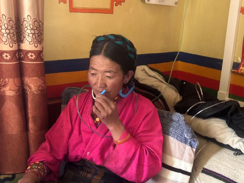 2月1日,推瓦村村民在“生命之屋”吸氧。(受訪者供圖)