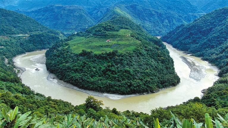 其實,果果塘大拐彎里還藏著一枚新年大型“彩蛋”——這里又稱作雅魯藏布江蛇形大拐彎。由雪域高原的百川匯流而成的雅魯藏布江,在果果拉山附近繞了一個大彎。站在德興鄉(xiāng)的觀景臺上眺望,人們便會發(fā)現(xiàn)這里宛如一條碧青的長蛇盤踞在蒼翠茂盛的雨林之間,蔚為壯觀。