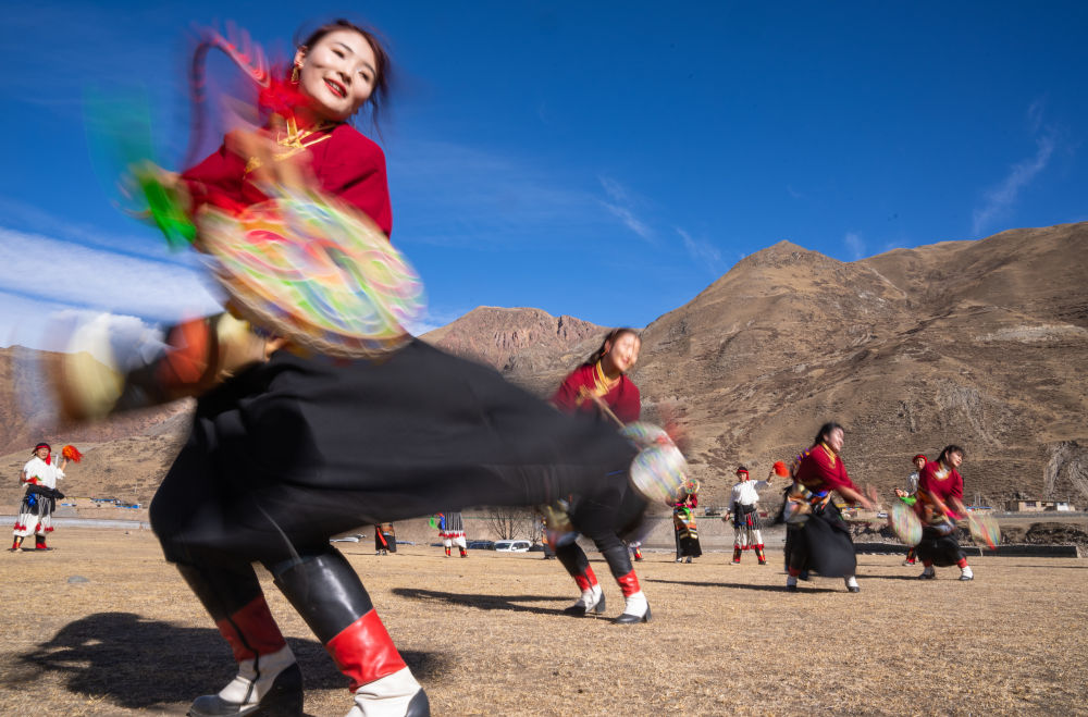 新年伊始,在西藏昌都市丁青縣尺犢鎮(zhèn)的草壩上,烏巴村文藝演出隊(duì)正在熱火朝天地排練。盡管寒風(fēng)凜冽,但激昂的鼓點(diǎn)和熱烈的音樂(lè),讓這片土地充滿了生機(jī)與活力。